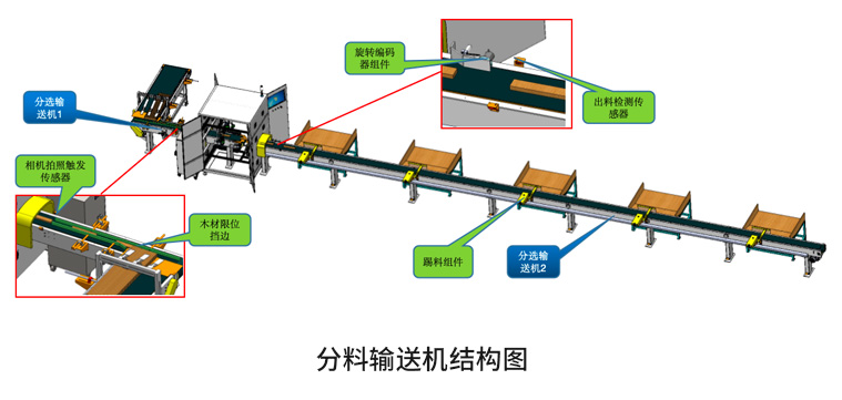 木材原料分揀(分級(jí)分色)工作站用于木材加工行業(yè)對(duì)于木材的篩選分類;基于木材表面缺陷進(jìn)行數(shù)據(jù)建模,融合數(shù)據(jù)庫(kù)、前端可視化、后端服務(wù)、機(jī)器視覺(jué)、AI大模型、神經(jīng)網(wǎng)絡(luò)算法、數(shù)據(jù)挖掘等多種技術(shù)對(duì)木材的缺陷進(jìn)行精準(zhǔn)識(shí)別,結(jié)合企業(yè)工藝標(biāo)準(zhǔn)得到木材等級(jí),配合PLC進(jìn)行邏輯控制,輔以高速氣缸進(jìn)行踢料,從而為木材原料分級(jí)分色。